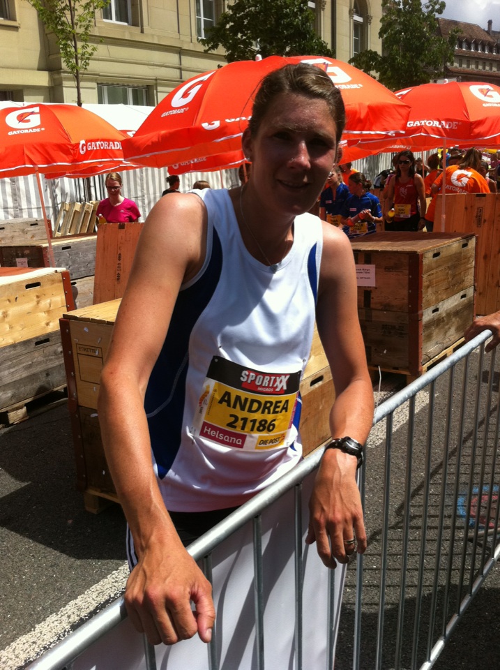 Andrea wusste die äusseren Bedingungen zu nutzen und überzeugte mit einer beherzten Leistung. Im Ziel wurde sie von ihren beiden Töchtern in Empfang genommen, die sich indes mehr für Mamas Trinkflasche denn für deren gelaufene Zeit interessierten. Da sie sich nun aber den Geschmack von isotonischen Getränken gewöhnt sind, dürfte es nur eine Frage der Zeit sein, bis auch Andreas Nachwuchs am Frauenlauf an der Startlinie steht...