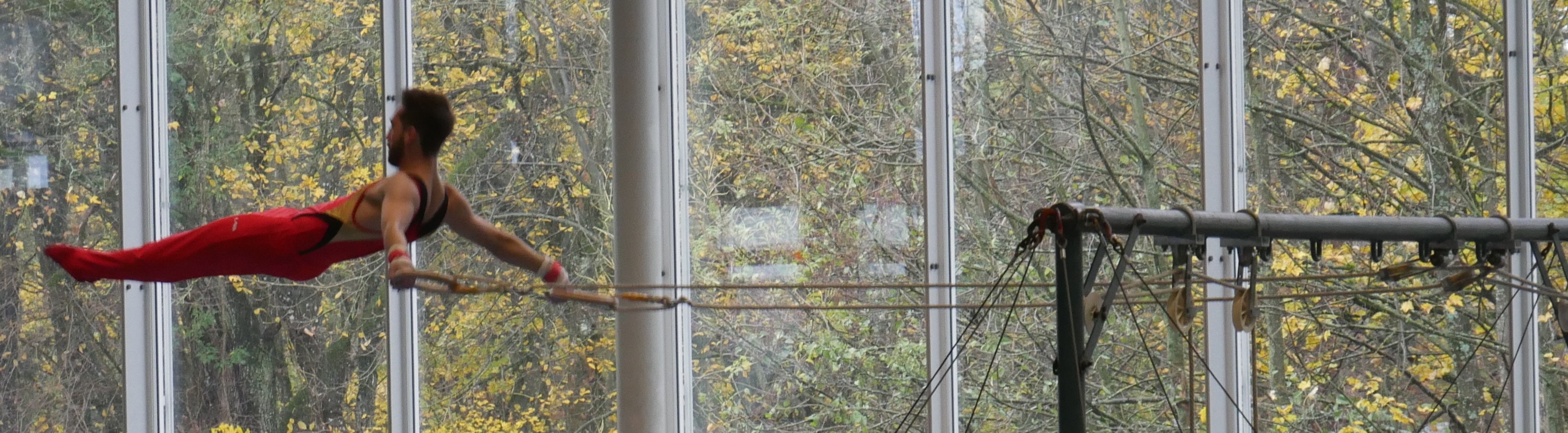 David während seiner Übung an den Schaukelringen.